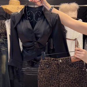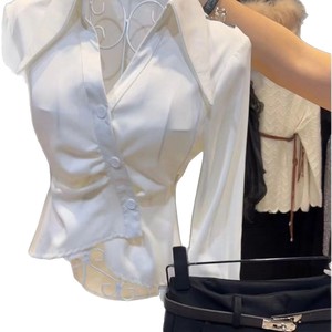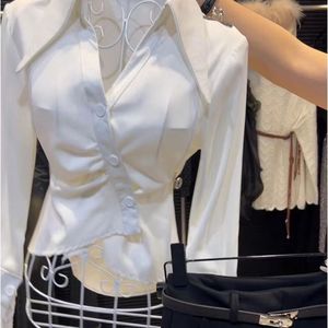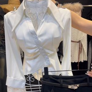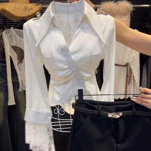 気質レーススプライシングラペル長袖シャツ女性のための 2024 秋の新しいハイエンドウエスト痩身シックなシャツ