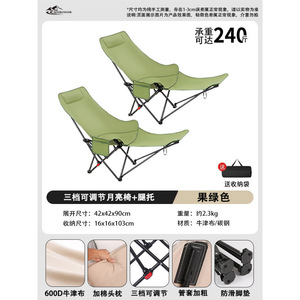 **座っても寝ても使える - 暖かさを保つ綿入り [綿入り + レッグレスト付き + 3段階調節可能なムーンチェア - フルーツグリーン X2]**
