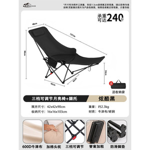 **座っても寝ても使える - 暖かさを保つ綿入り [綿入り + レッグレスト付き + 3段階調節可能なムーンチェア - クールブラック] **