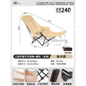 **座っても寝ても使える - 暖かさを保つ綿入り [綿入り + レッグレスト付き + 3段階調節可能なムーンチェア - ライトカーキ X2]**