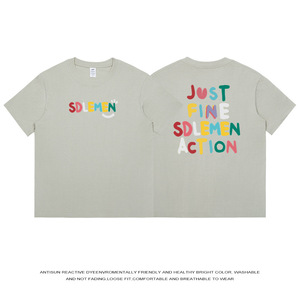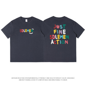 Huiben 紳士服カラフルな手描きの文字半袖メンズ純綿夏の新しいストリートカジュアルトップス Tシャツ卸売