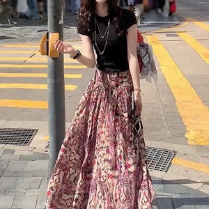 ボヘミアン夏の新しいファッション高級気質レトロロマンチックなハーフスカート半袖セーター