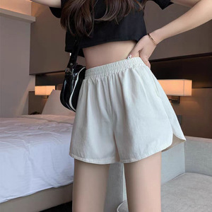 女性用ツイルコットンスポーツカジュアルショーツ、夏用ウエストゴム、ゆったり、万能、小柄な人向け、スリム、ワイドレッグ、Aラインホットパンツ
