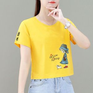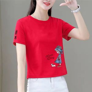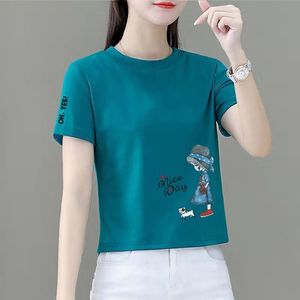 2025 新しい純綿右肩半袖 T シャツ女性の夏のトレンディな気質大きいサイズママ夏のスリット痩身カバー