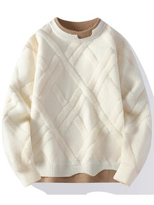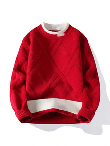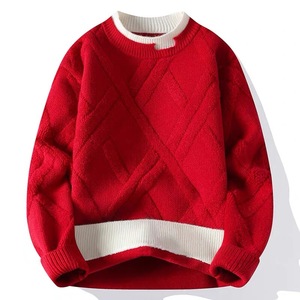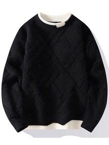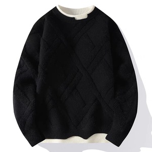 跨境外贸代发男秋冬加厚保暖毛衣套头圆领男士宽松上衣潮流打底衫