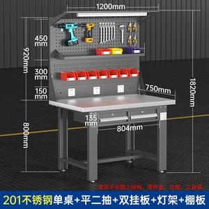 2100*750 シングルテーブル + フラット 3 引き出し + 二重吊りボード + ライトスタンド + 小屋ボード