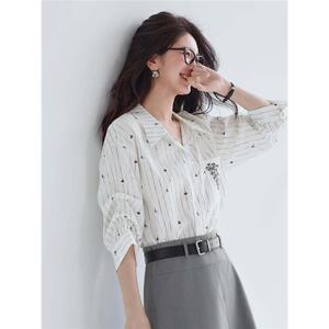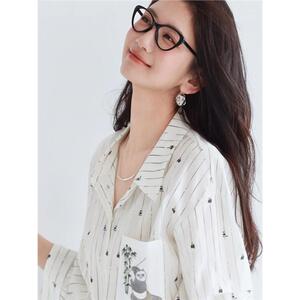 【ショッピングモール同スタイル】イーシャツ ルーズストライプ カンフーパンダ刺繍ポケットトップス 1F4120932I