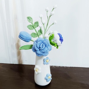 最新のクロスボーダーローズカメリアバラ花瓶手編みウールブーケ教師の日ギフトお土産