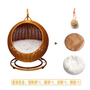 籐猫の巣、オールシーズン対応、スイングペットハンモック、洗える犬用ベッド、猫と子猫の睡眠の巣、夏用ハンギングバスケット