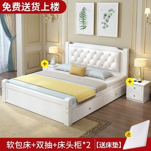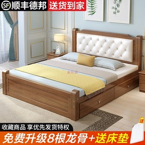 無垢材ベッド 1.8m 経済的な大人のマスターベッドルームダブルベッドヨーロピアンスタイル 1.5m 家庭用 1.2m シングルベッド 1m