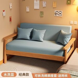 [クラシック] ウォッシュドブルー/取り外し可能で洗えるコットンとリネンのシートカバー/無料の枕