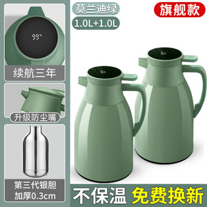 34_(ペアの方がコスト効率が高くなります。色の変更についてはカスタマーサービスにお問い合わせください) フラッグシップモデル [モランディ グリーン] 魔法瓶ケトル 1.0 リットル + 1.0 リットル (厚みのある銀のブラダー + 温度表示と電池寿命 3