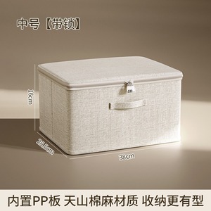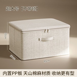 フリップトップロック付き衣類収納ボックス天山綿とリネン折りたたみ収納バスケット多機能大容量整理ボックス