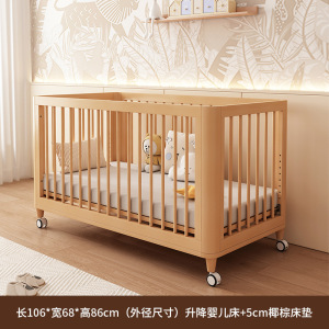 昇降可能な無塗装ベビーベッド + 5cm ココヤシマットレス