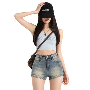 アメリカンレトロデニムショートパンツ女性のための 2025 夏の新しいハイウエスト多用途痩身ヒップホップホットガール A ラインホットパンツ