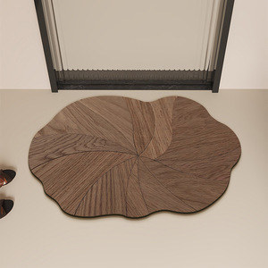 シンプルな無地の特殊形状木目調珪藻泥吸水性フロアマット、汚れ防止、防塵、耐摩耗性フットマット、玄関ドアマット