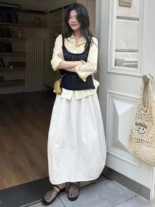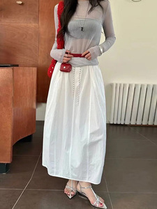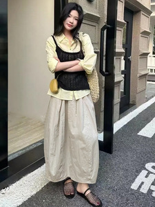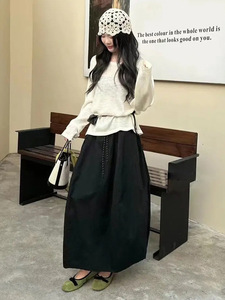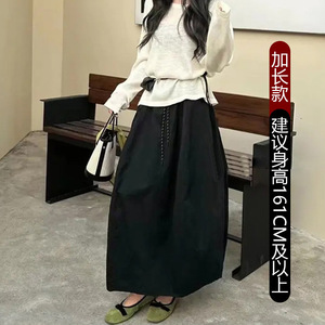 速乾性マウンテンスタイルワークウェアスカート、女性用、初秋新作、ハイウエストふわふわパンプキンスカート、巾着Aライン痩身ミドル丈スカート