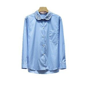 Moshu Weiya 2025 初秋の新作ヘビーデューティースパンコールラペルシングルブレスト長袖シャツ 4C05D
