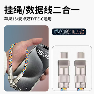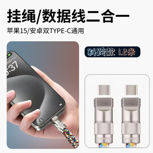 手机挂绳数据线二合一 编织PD65W快充数据线type-c适用华为苹果16