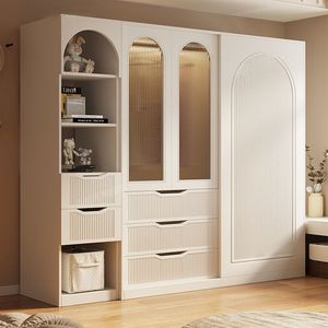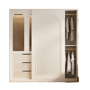 家庭用寝室小さなアパートライト高級引き戸収納ワードローブ子供用ワードローブFulitangフレンチクリームスタイルワードローブ