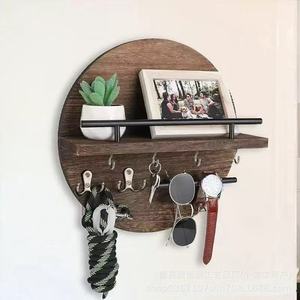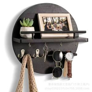 木製壁ラックリビングルーム玄関キー サングラス ハンガー円形背景装飾ラック封筒メール ラック