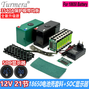 18650 バッテリーボックスセット 3S40A 保護ボード、SOC ディスプレイ付きイコライザー 12V リチウムバッテリーシェル付き