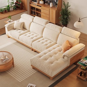 Aiwo Shi アパートメントファブリックソファ 小さなリビングルーム 北欧ログクリームスタイル 3人掛けストレートソファ