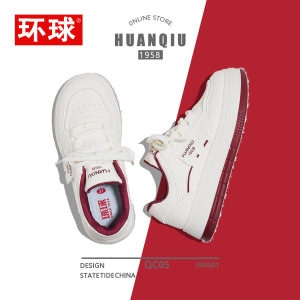 环球酒红色软底软面小白鞋2025爆款热卖韩版百搭学生休闲板鞋女鞋