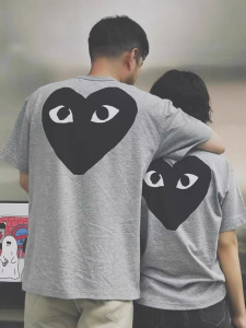 国境を越えた人気の日本語版のカップルTシャツ川久愛男女同型半袖CDGプリントプレイボーリング