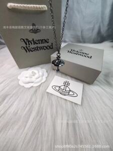 西太后爆款枪黑色巴洛克水滴珍珠项链手女轻奢土星飞碟吊坠高版本