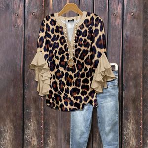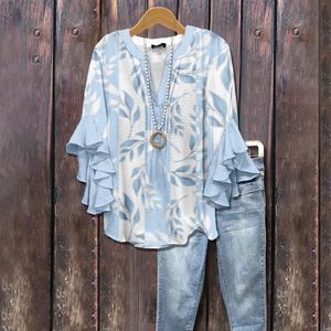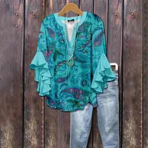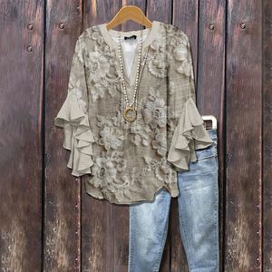3D 新製品クロスボーダークリエイティブ花要素プリントデジタルプリントカジュアルトレンド V ネックフリル Tシャツ婦人服