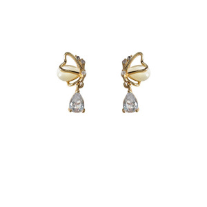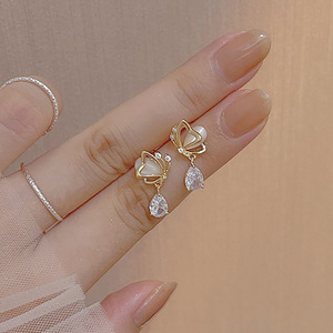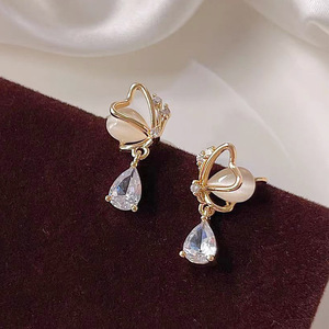 キャッツアイ蝶愛水滴ジルコン s925 シルバー針イヤリング女性のニッチデザインハイエンド気質イヤリング女性