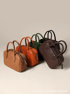 【在庫あり】Qiu Zhen ボウリングバッグ ワイドバッグ 植物タンニンなめし牛革 通勤 ショルダー クロスボディバッグ ポータブル スモール スクエアバッグ 女性用