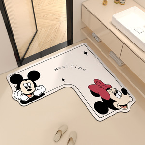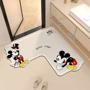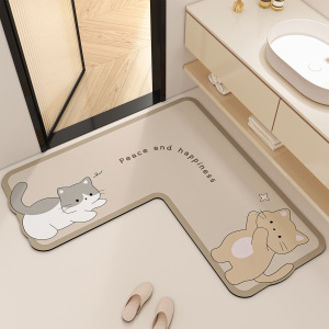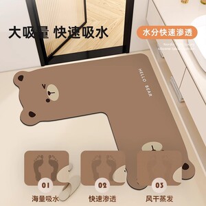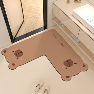 简约卡通动物硅藻泥L形吸水防滑家用厨房地垫耐脏浴室卫生间地垫