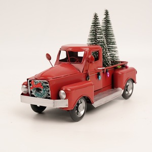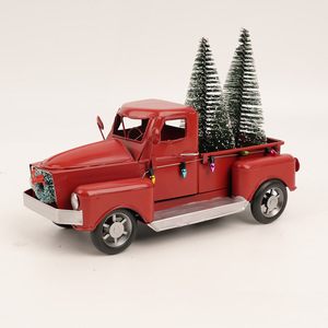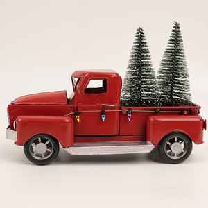 跨境复古红色卡车金属工艺摆件圣诞树汽车模型家居装饰感恩节礼品