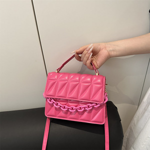 简约设计复古手提小方包女包2025夏季新款链条洋气纯色单肩斜挎包