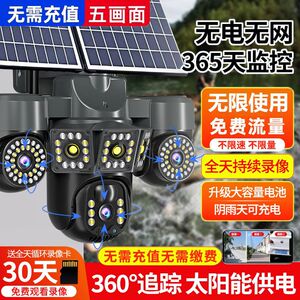 现货一件代发无电无网太阳能监控户外低功耗摄像头360度全彩监控