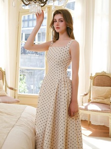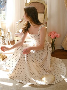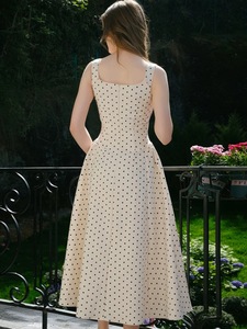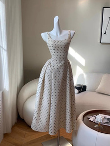 25ss「Nanfayayun」フレンチ水玉ドレスレディースサマーサスペンダースカート気質ピンチウエストロングスカート