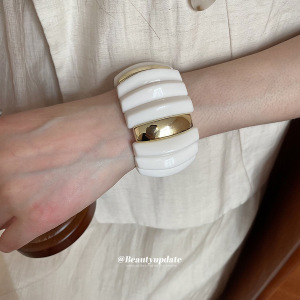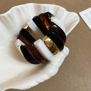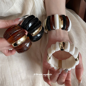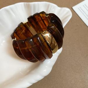 アクリルのグラデーション長方形ビーズ編みブレスレット、レトロで個性的な誇張されたブレスレット、ニッチなデザインのハンドアクセサリー