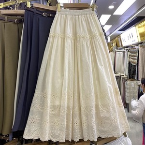 フランスのヘビーデューティーレース中空フックパターンスカート女性のための春ハイウエストスリムスカートミドル丈Aラインスカート381G