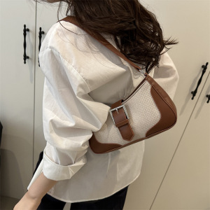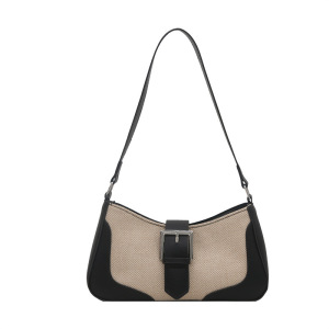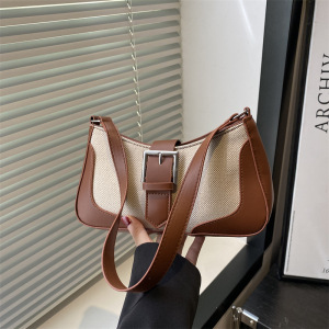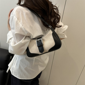 2025新款流行潮流时尚单肩斜挎腋下小方包法式麻布拼接简约大容量
