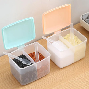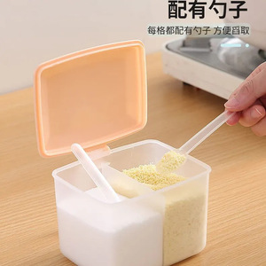 調味料ボックス一体型ダブルコンパートメントキッチン収納ボックス調味料調味料ボックス組み合わせセット家庭用塩ボックス