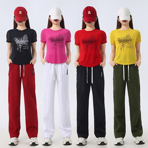 2025 スクエアダンス夏の新作スーツメッシュトップカジュアルスポーツワイドレッグパンツスローダンスダンスパフォーマンス服