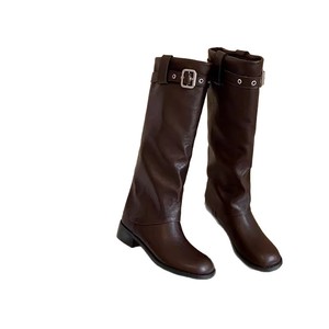ホットガールスリムハイレグブーツ膝上ベルトバックル太ヒールナイトブーツ厚底ウエスタンカウボーイブーツ女性冬
