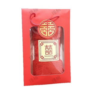 赤いハッピータオル結婚式ペア結婚式持参金婚約お返しギフトハッピーアイエンツ新中国風の実用的なギフトボックス