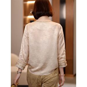 ファッショナブルで軽い高級ジャカード中空ラウンドネックシャツ夏の新しい控えめでエレガントな女性の七分袖シャツ 8178