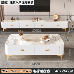 コーヒーテーブルとテレビキャビネットの組み合わせシャネルスレート+ホワイトキャビネットゴールド飛行機脚140+200