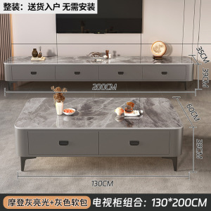 スレートコーヒーテーブルリビングルームホーム2025新しいライト高級テーブルハイエンド小型アパートメントフロアコーヒーテーブルテレビキャビネットの組み合わせ