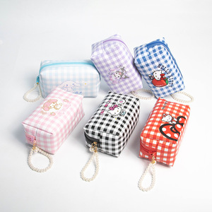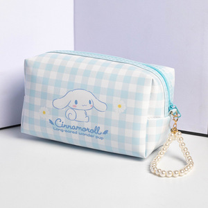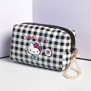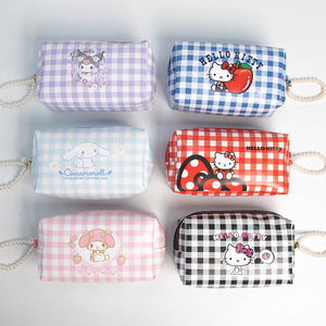 サンリオ正規認定チェック柄レザー化粧品バッグ工場直販韓国版女の子のお出かけ化粧品収納バッグ