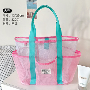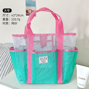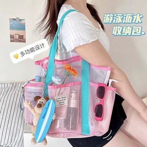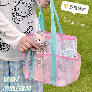 グリッドポータブルスイミングバッグ大容量ビーチバッグ旅行入浴フィットネス洗濯水着収納メッシュ収納袋
